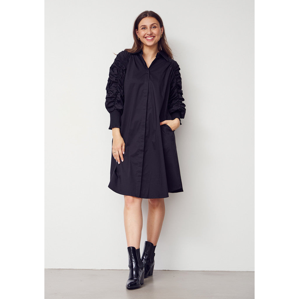 This shirtdress stands out with its striking ruched details on the sleeves, which give an exclusive and modern look. The Sigga Deco Dress combines classic lines with creative details, making it ideal for both everyday wear and special occasions.