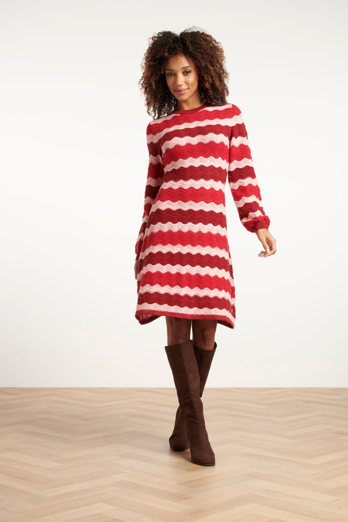 The perfect blend of comfort, style, and modern design. The wavy pattern gives the dress a playful graphic effect, while the loose fit and round neck create a flattering silhouette.